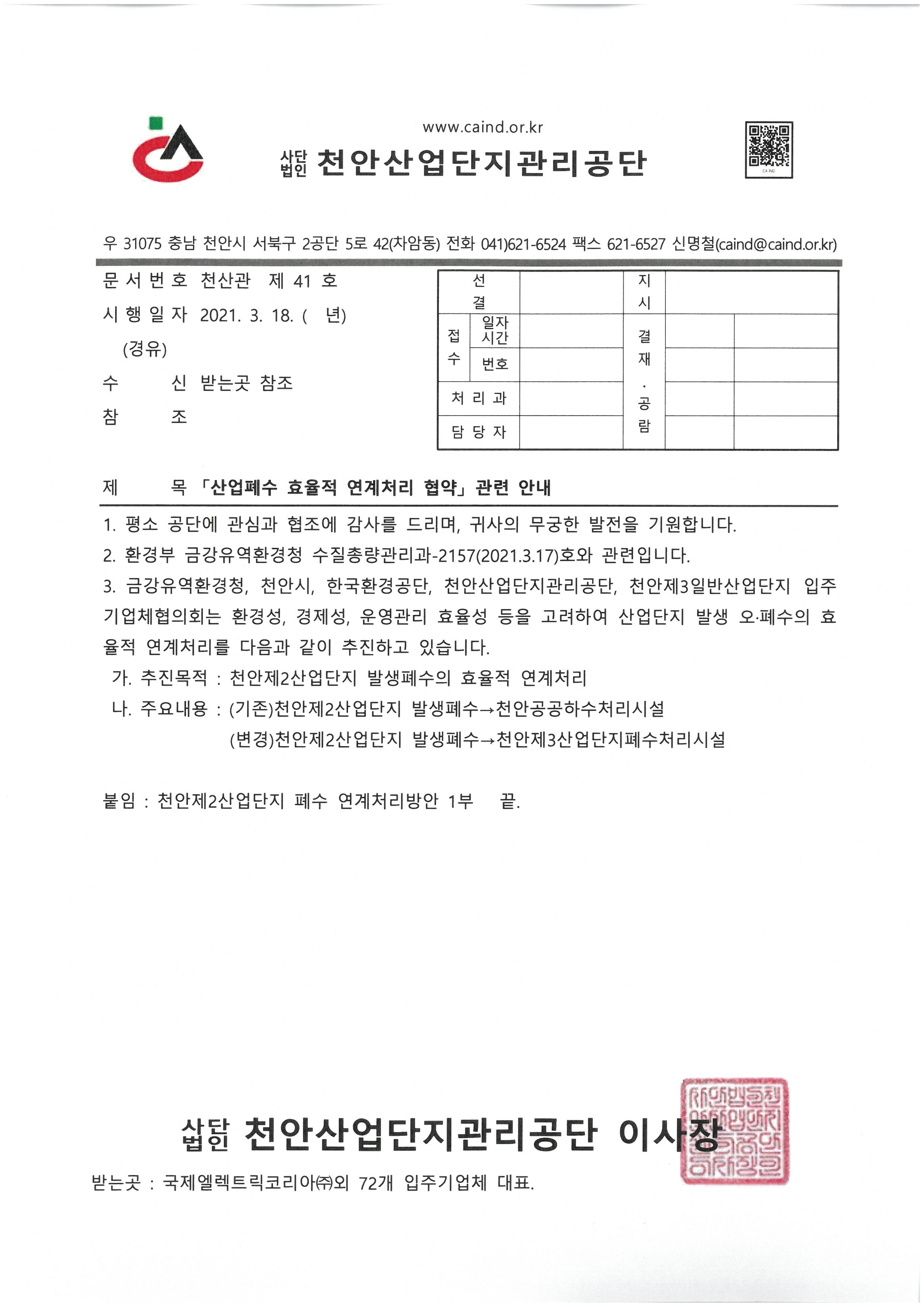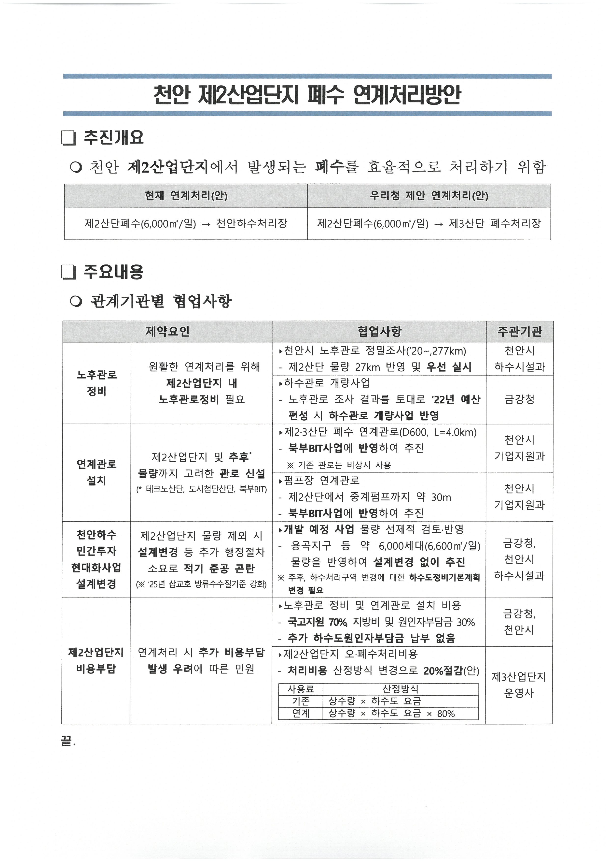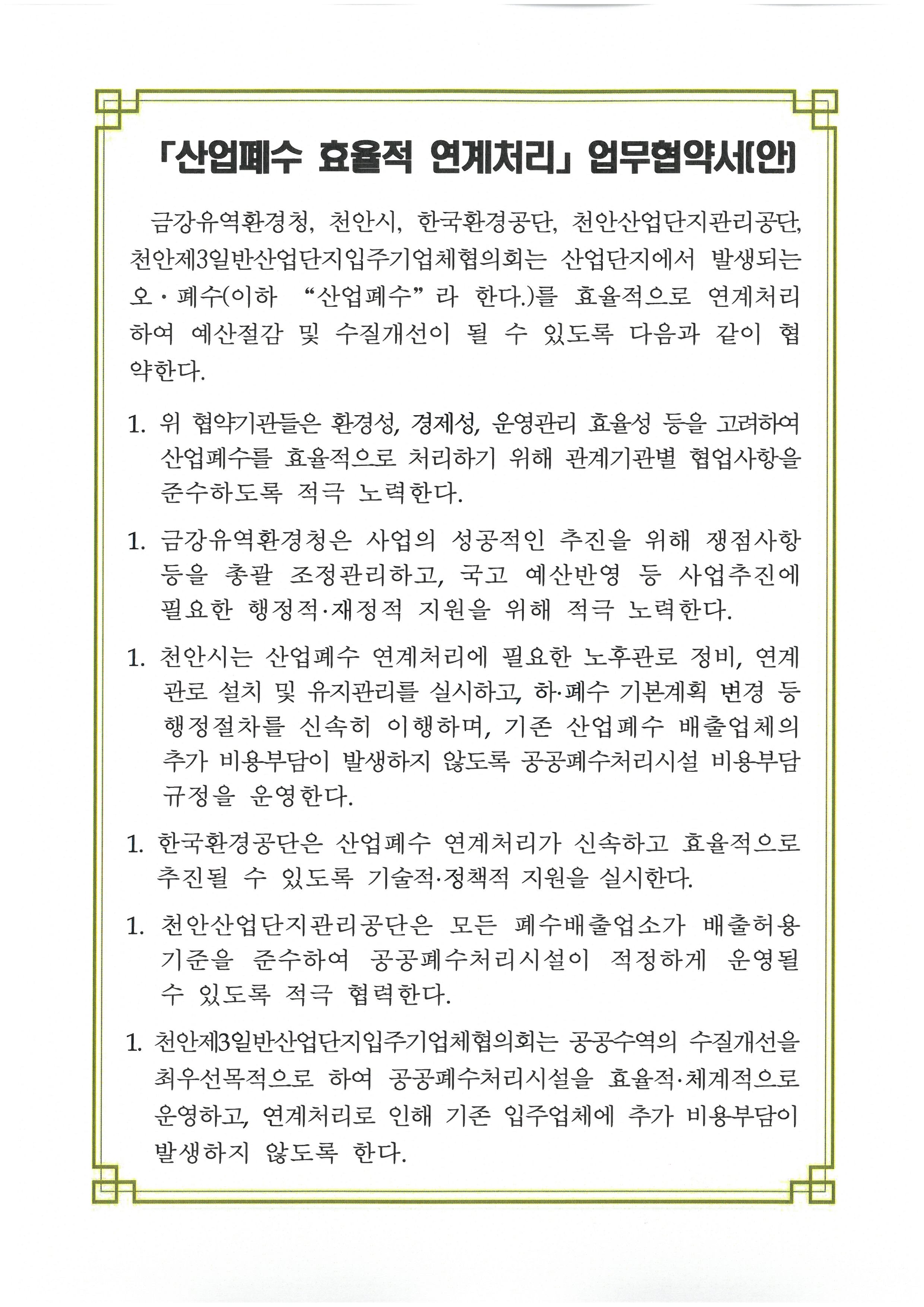 제목 「산업폐수 효율적 연계처리 협약」 관련 안내
