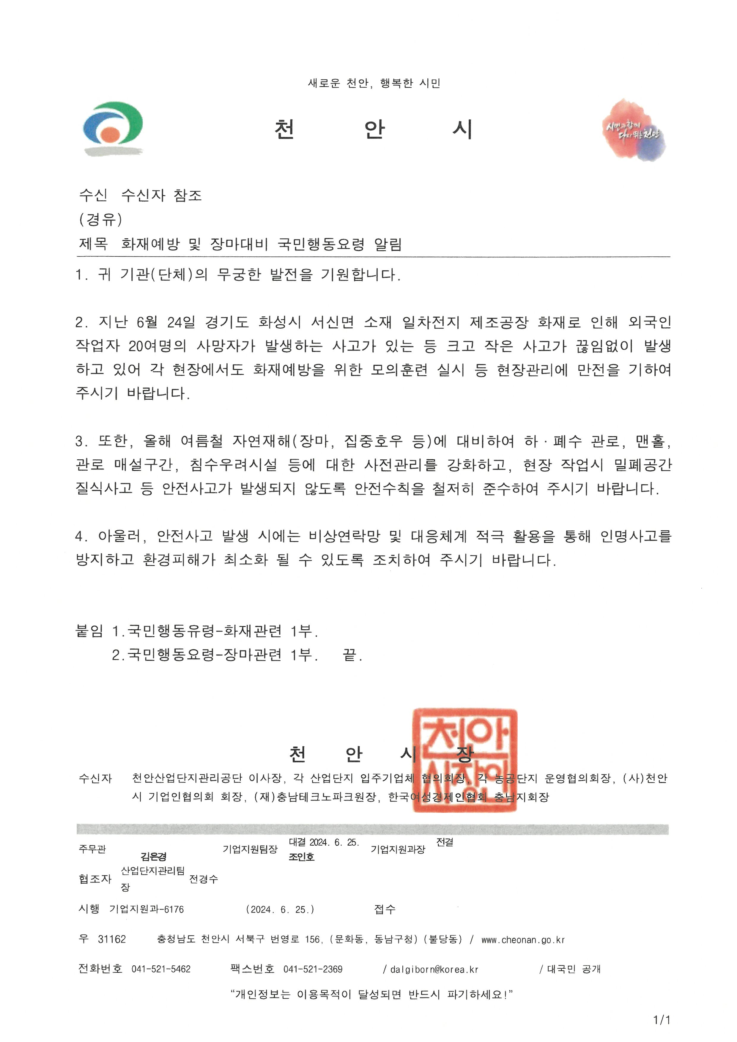 제목 화재예방 및 장마대비 국민행동요령 안내